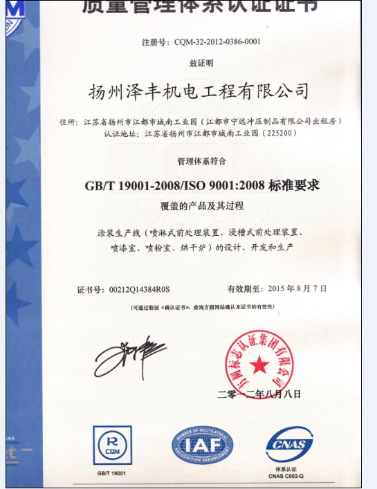 扬州泽丰机电工程有限公司顺利通过ISO9001:2008质量体系认证