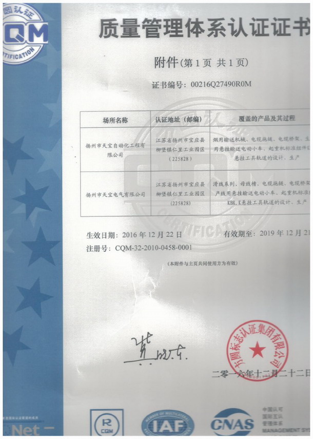 扬州市天宝电气有限公司顺利通过ISO9001:2015质量管理体系认证